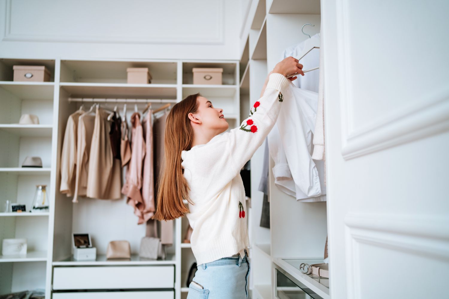 Okay, now you’ve got just the good stuff left. This is the time to consider your closet’s layout and wardrobe design. Are all your shoes piled in a tangled mess? Are sweaters always sliding off shelves? You might not have a custom walk-in, but even the tiniest space can get a serious upgrade. Add a second rod for short-hanging items, use slim (not bulky) velvet hangers, and get creative with bins or boxes. Shelf dividers are magic for keeping stacks of jeans or tees from morphing into a jumble.
